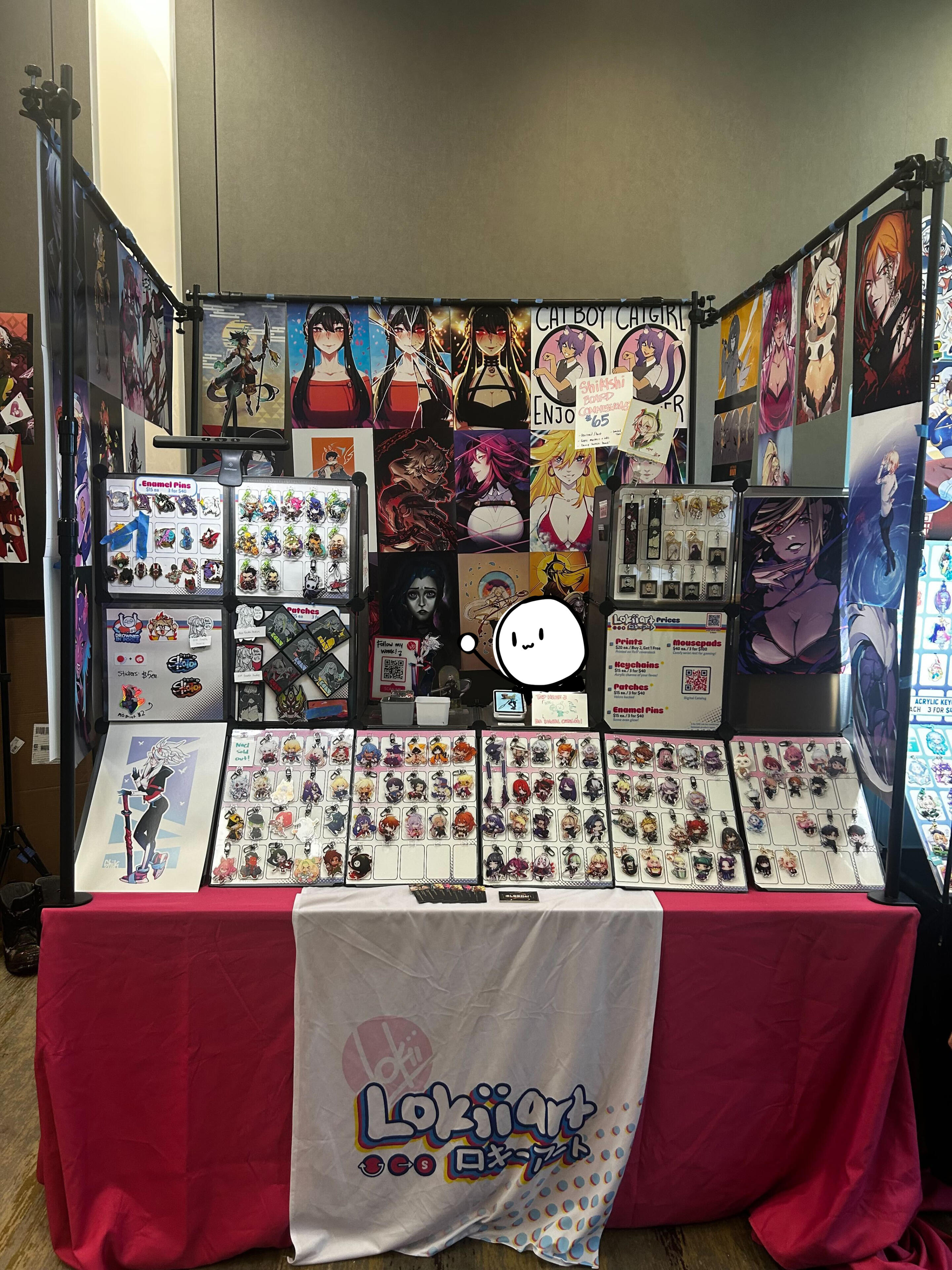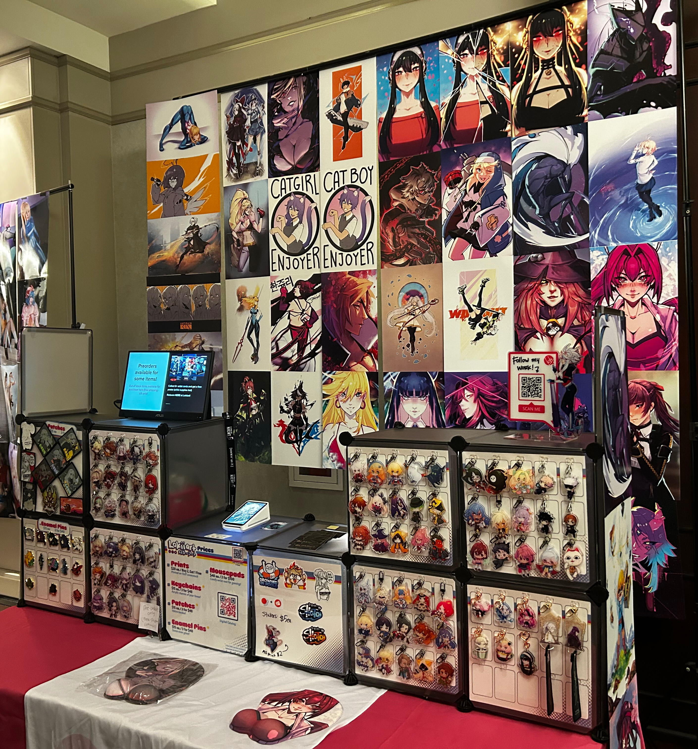 She has been selling at anime/gaming events in artist alley or vendors hall since 2013. She has a fondness for drawing cool, pretty ladies. She loves to experiment with different merchandise types and is currently obsessed with patches and jet tags. Her Golden Retriever, Odin, is secretly the brains behind the whole operation. ■